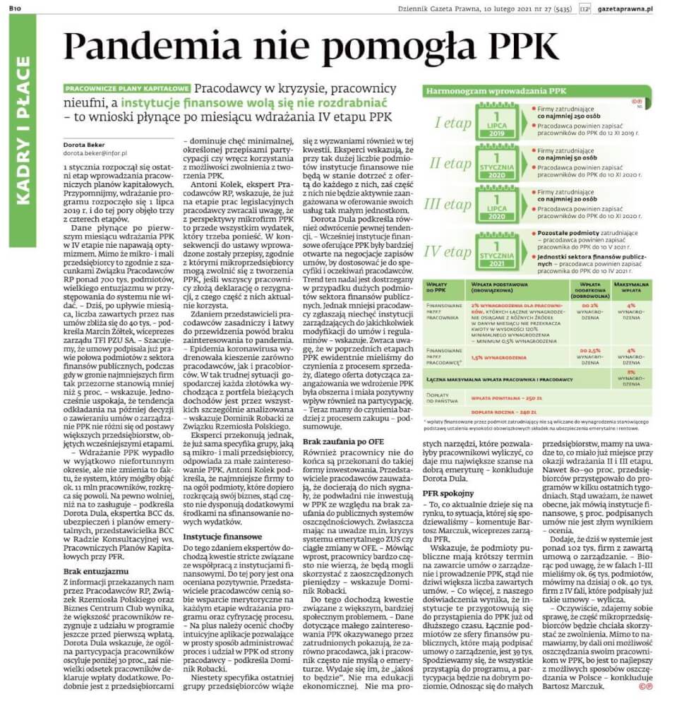 W dzisiejszym numerze Dziennik Gazeta Prawna oraz na portalu gazetaprawna.pl, na temat stanu wdrażania Pracowniczych Planów Kapitałowych głos zabrał Dominik Robacki, Dyrektor Zespołu Samorządowo – Organizacyjnego ZRP, Członek Zespołu problemowego ds. Prawa Pracy RDS.